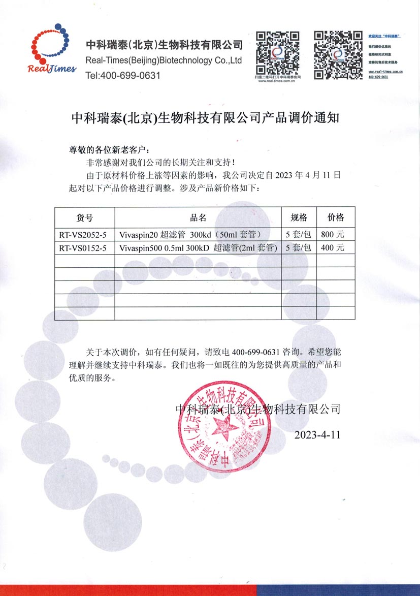 產(chǎn)品調(diào)價通知-Vivaspin超濾管產(chǎn)品
