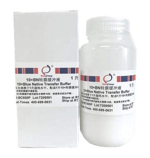 10×BN轉(zhuǎn)膜緩沖液(10×Blue Native Transfer Buffer)適用于BN蛋白電泳后凝膠上非變性蛋白的轉(zhuǎn)膜。本轉(zhuǎn)膜液配制便捷,稀釋后無需調(diào)節(jié)pH值,pH約為7.5-7.7。該緩沖液最終可配成10升即用型1×緩沖液(根據(jù)需求補加甲醇)。
