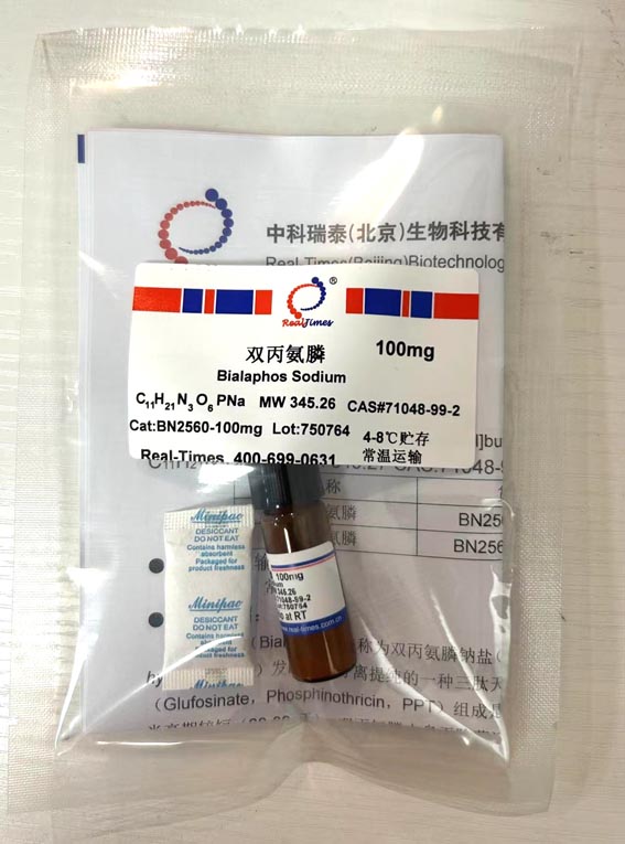 雙丙氨膦(Bialaphos)也稱為雙丙氨膦鈉鹽(Bialaphos Na)是從土壤吸水鏈霉菌(Streptomyces hygroscopicus)發(fā)酵液中分離提純的一種三肽天然產(chǎn)物,由兩個(gè)丙氨酸殘基和谷氨酸類似物草銨膦(Glufosinate,Phosphinothricin,PPT)組成是一種非選擇性除草劑,對(duì)哺乳動(dòng)物低毒,在土壤中半衰期較短(20-30天)。雙丙氨膦本身無除草活性,在植物體內(nèi)降解成具有除草活性的草銨膦和丙氨酸。