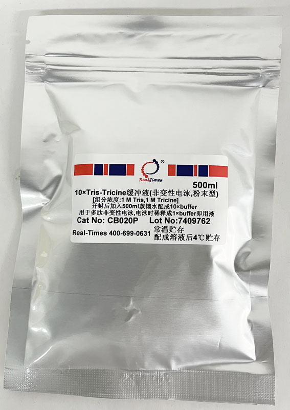 說明:開封后將全部干粉溶于500ml蒸餾水中即配成10×Tris-Tricine緩沖液,電泳時(shí)稀釋成1×緩沖液即用液,不要調(diào)節(jié)pH。