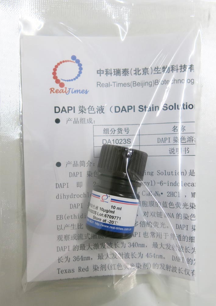 本DAPI染色液為即用型,濃度為10μg/ml,可以直接用于固定細(xì)胞或組織的細(xì)胞核染色。