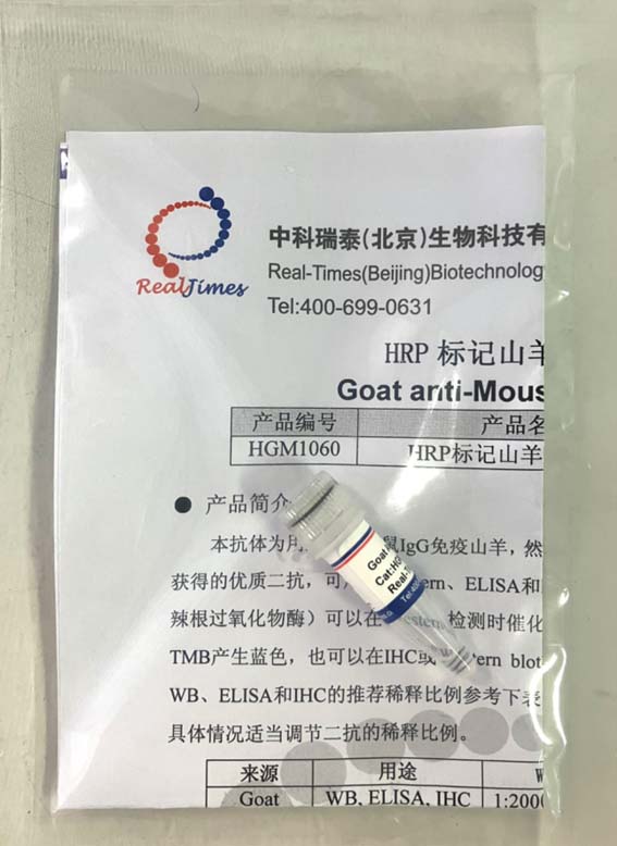 本抗體為用純化的小鼠IgG免疫山羊,然后用親和純化柱對(duì)獲得的抗血清進(jìn)行純化而獲得的優(yōu)質(zhì)二抗,可用于Western、ELISA和IHC等實(shí)驗(yàn)。HRP(horseradish peroxidase,辣根過氧化物酶)可以在Western檢測時(shí)催化ECL類試劑產(chǎn)生化學(xué)發(fā)光,在ELISA時(shí)催化TMB產(chǎn)生藍(lán)色,也可以在IHC或Western blot檢測時(shí)催化DAB產(chǎn)生棕色沉淀。此產(chǎn)品用于WB、ELISA和IHC的推薦稀釋比例參考下表,實(shí)際實(shí)驗(yàn)操作過程中需根據(jù)抗原和抗體的具體情況適當(dāng)調(diào)節(jié)二抗的稀釋比例。