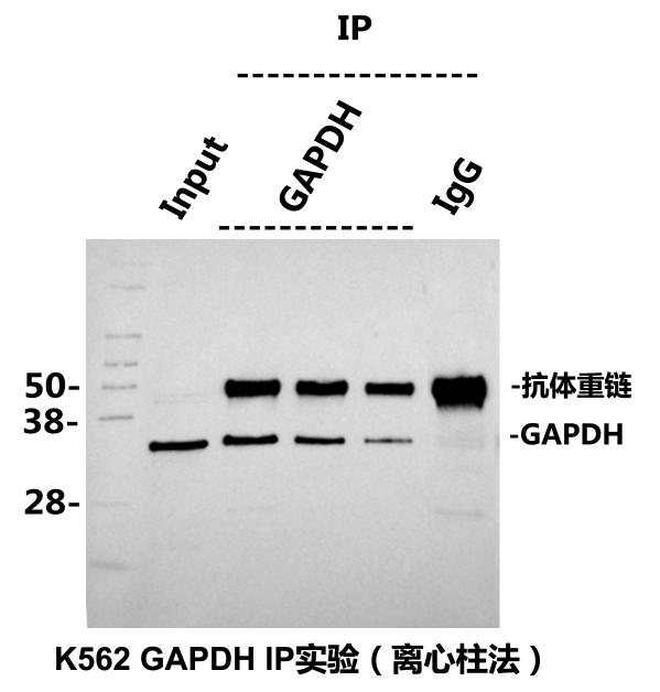 GAPDH-IP:5 μl GAPDH兔單抗加400μl(640 μg)K562總蛋白(1.6