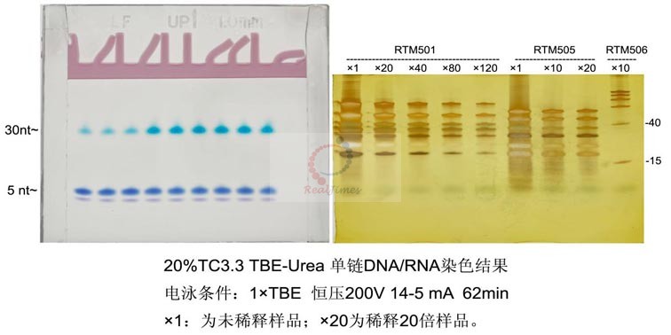 2. 使用核酸PAGE電泳染色試劑盒(貨號(hào):RTS5102)染色: