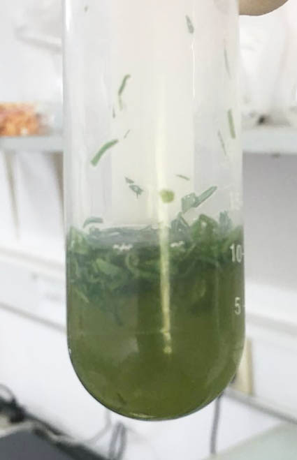 取生長狀態(tài)良好的葉片切成0.5-1 mm的小條,按照0.1 克葉片(擬南芥約15-20個葉片)加5 ml即用型酶溶液的比例迅速將切割好的葉片小條浸泡于酶溶液中,避光,無需震蕩,常溫(20-25℃)酶解3小時,間歇混勻。