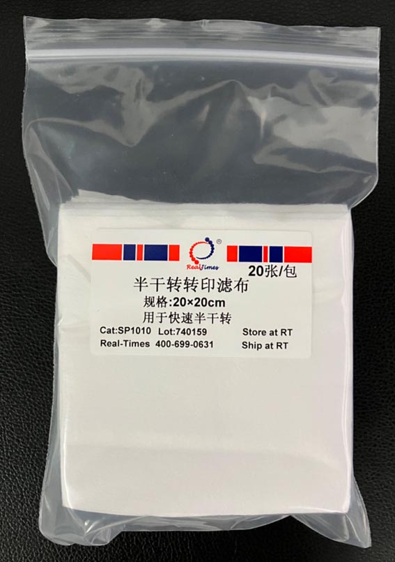 本轉(zhuǎn)印濾布可以耐受用于蛋白印跡中的甲醇、乙醇及其它有機(jī)試劑。濾布展開大小為20×20 cm,無需自行裁切,根據(jù)需要可以自由折疊為使用的厚度,使用方便。