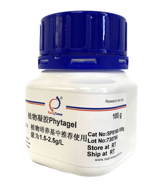 Phytagel又名Gellan gum,Gelrite。是一種瓊脂的替代物,是細(xì)菌(假單孢菌Pseudomonas elodea)經(jīng)過(guò)發(fā)酵生產(chǎn)的,含有葡萄糖醛酸、鼠李糖和葡萄糖等物質(zhì),具有無(wú)色、透亮和高韌性的特點(diǎn),是配制植物組織培養(yǎng)基和微生物培養(yǎng)基的主要成分。由于其克服了傳統(tǒng)瓊脂在植物組織培養(yǎng)中的固有缺陷為植物學(xué)研究帶來(lái)了一場(chǎng)新的革命,已經(jīng)成為了國(guó)際公認(rèn)的植物組培首選產(chǎn)品。