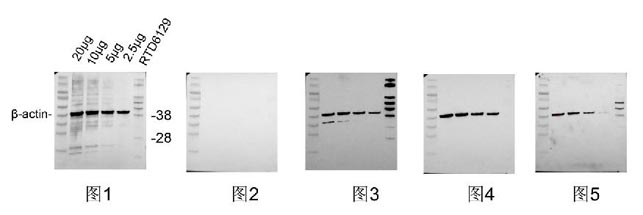 60分鐘,一抗:Santa β-Actin鼠單抗(SC-47778) 1:4000 RT 60min,羊抗鼠IgG-HRP 1:5000(貨號:HGM1060) RT 60min;ECL自動曝光6秒。