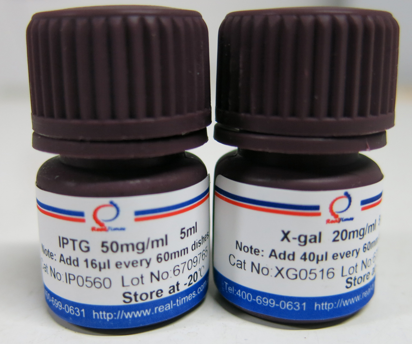 20mg/ml X-Gal  5ml:取100mg X-gal,溶于5ml 二甲基甲酰胺(DMF),棕色瓶中-20℃貯存。此試劑無需滅菌。